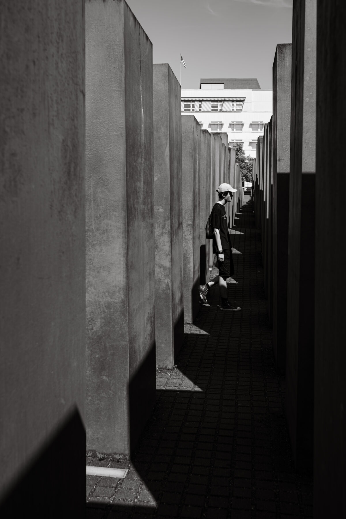 Das nächste Ziel ist das ganze Gegenteil von Leichtigkeit. Ich kenne diesen Ort und die Ausstellung dazu. Ohne das Museum kann man dieses Denkmal für die ermordeten Juden Europas meiner Meinung nach nicht vollständig verstehen. Es hat eine Kraft, die tief ins Herz geht. Ich stehe umringt von hohen dunklen Betonstelen. Eine erdrückende Gleichzeitigkeit von Licht und Dunkelheit. Die Schatten der Vergangenheit lauern hinter jeder Ecke genau wie die Hoffnung auf eine friedvolle Zufkunft für alle Menschen. Das Licht reicht bis zum Boden und lässt einen Löwenzahn wachsen. Was für ein schönes Bild voller Zuversicht.