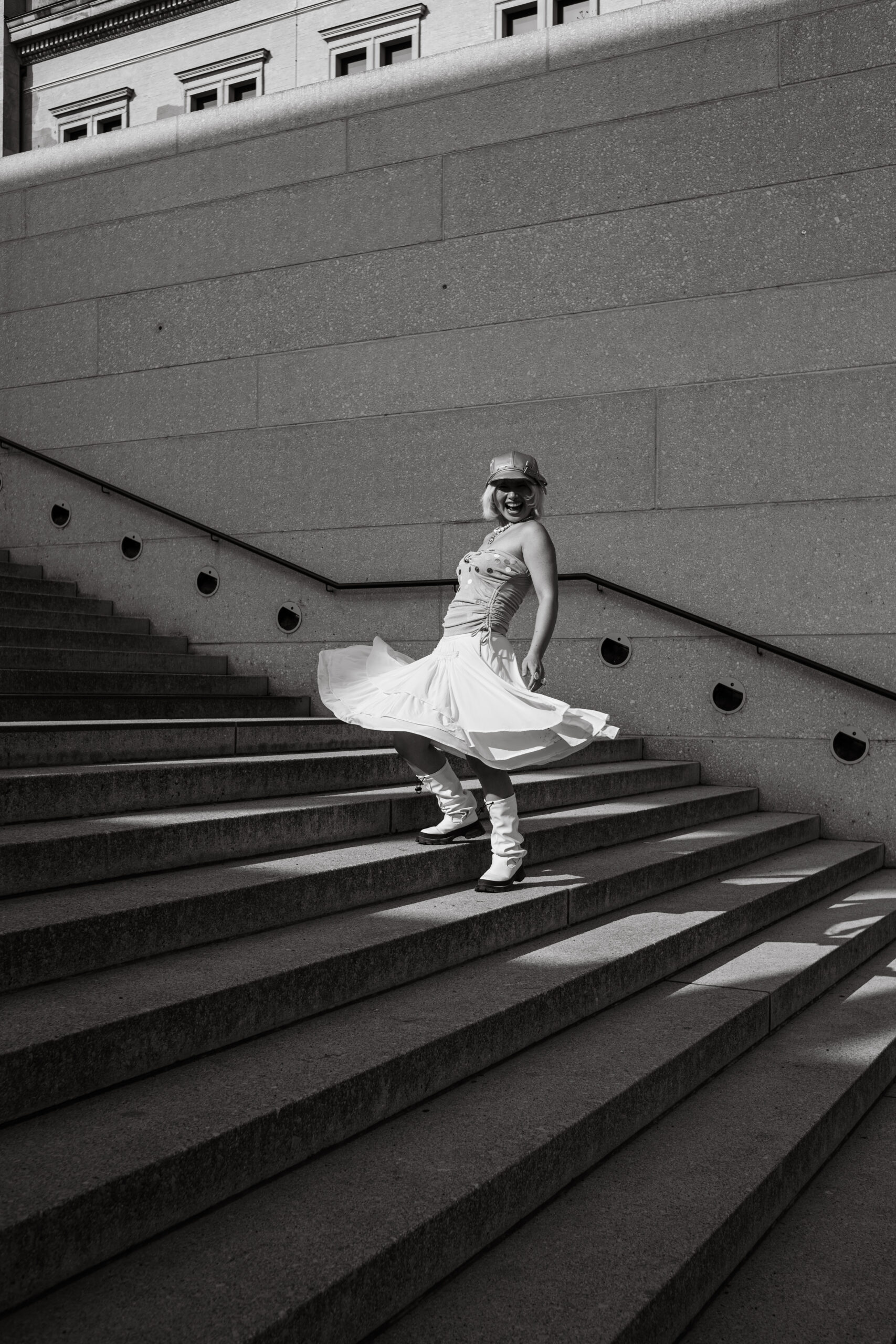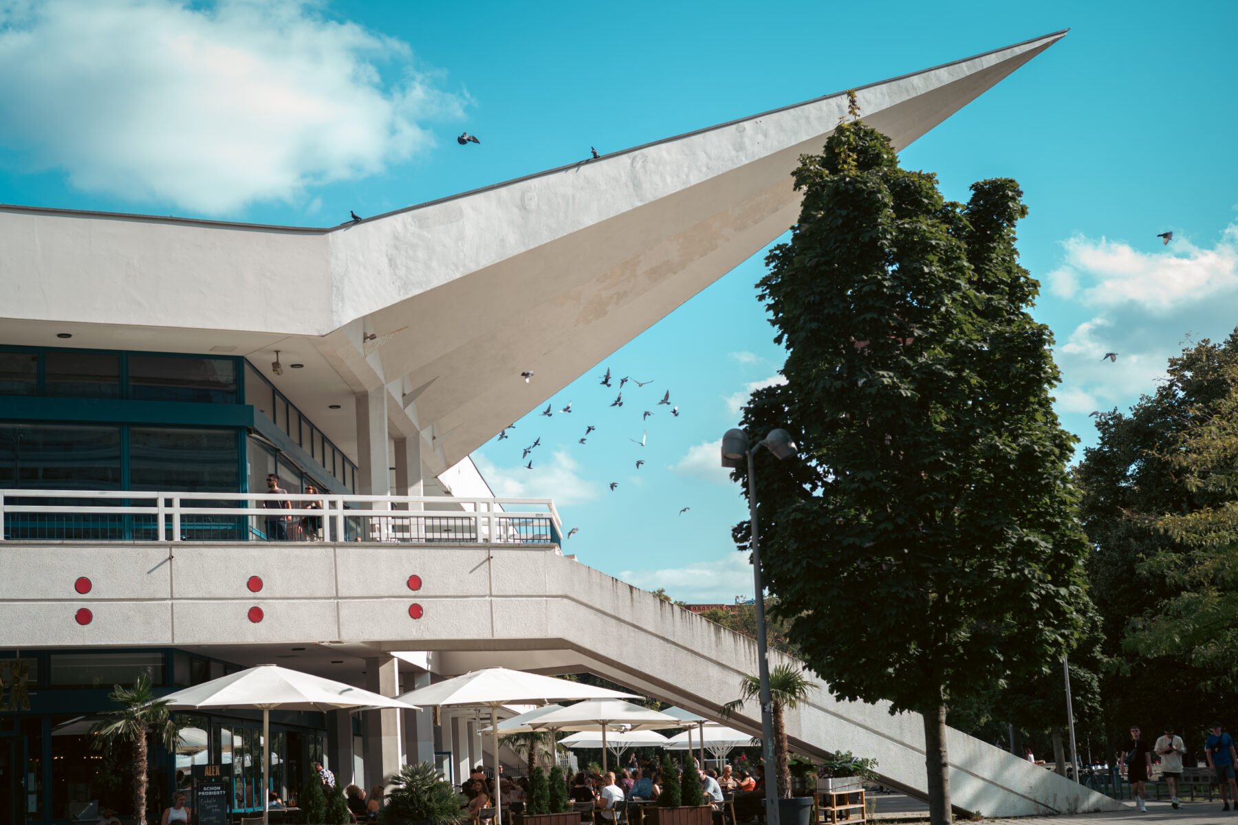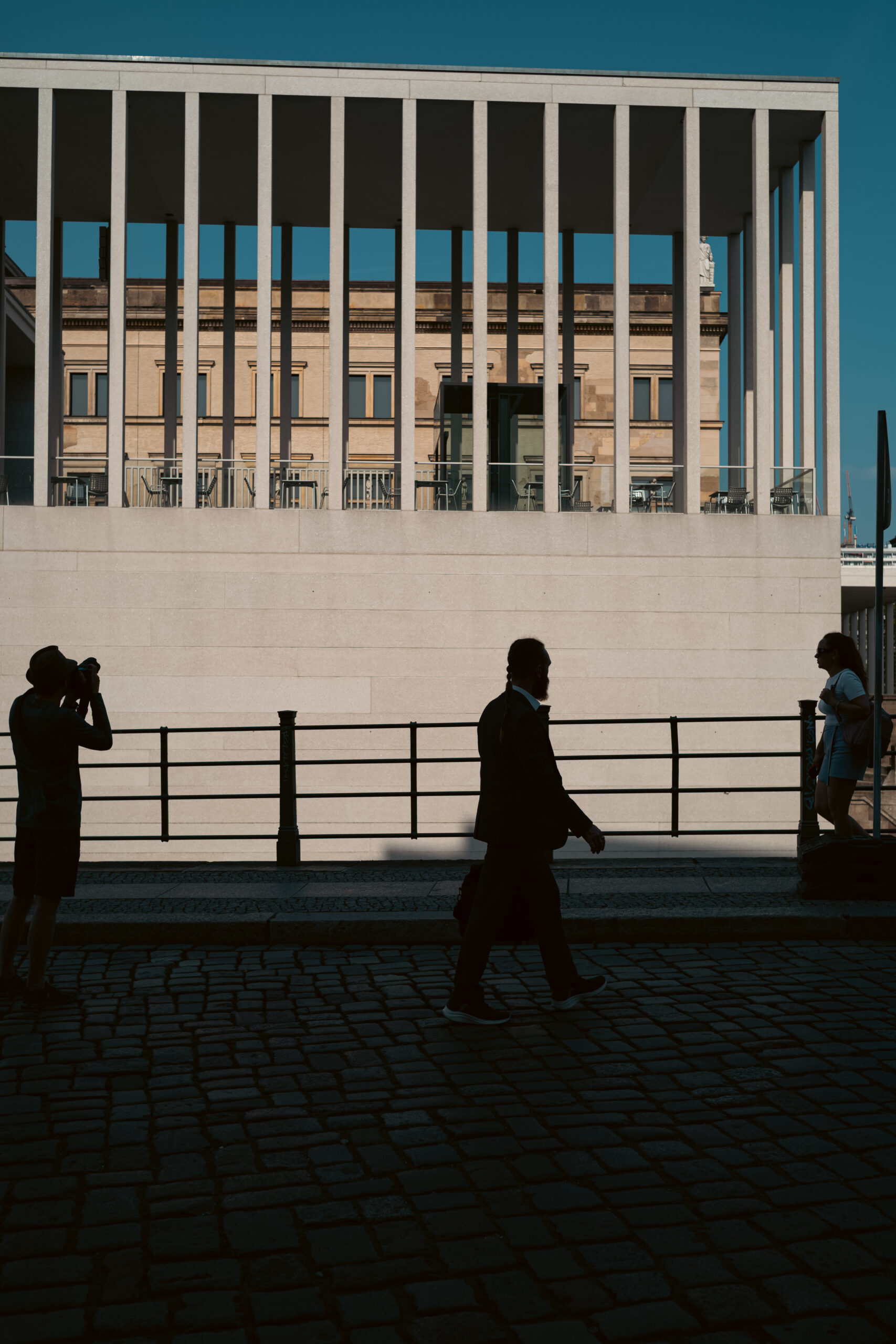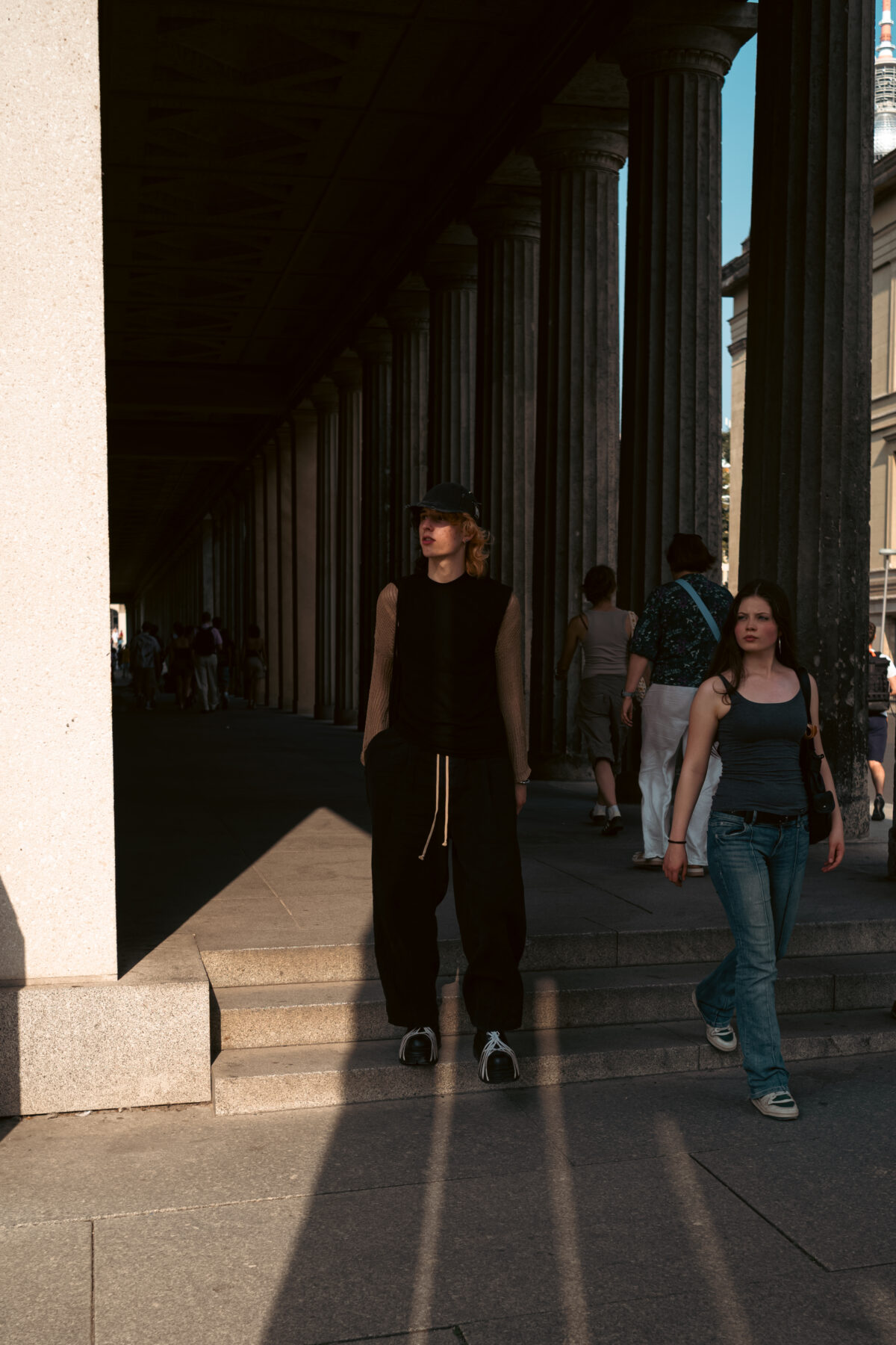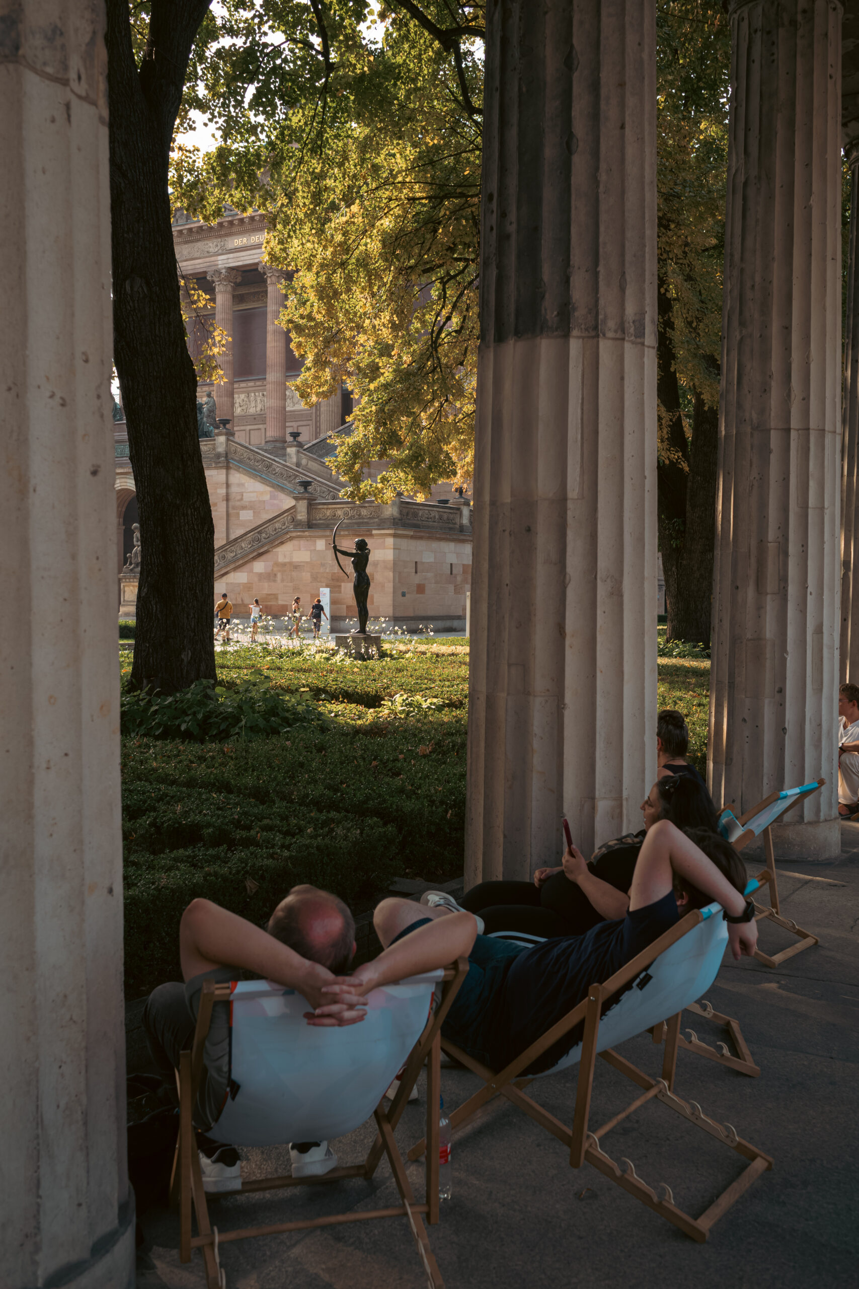 Das Licht bei der James Simon Galerie zaubert Scherenschnittschatten für mich. Sommer in seiner perfekten Art und Weise. Der Asphalt strahlt die Hitze des Tages in alle Ecken des Gebäudes. Man wünscht sich einen Regenschauer herbei, der den Staub von den Straßen wäscht und die Luft erfrischt. Drei Frauen aus Halle lassen sich auf meine Kamera ein, bevor sie zu einer Bootstour aufbrechen. Sie lachen und strahlen eine Leichtigkeit aus, die ich im Südwesten der Republik immer vermisse. Das Mädchen aus Shanghai tanzt für uns auf den Stufen des Museums. Sie lässt der Freude freien Lauf. frei sein- in Berlin Worte mit Bedeutung.