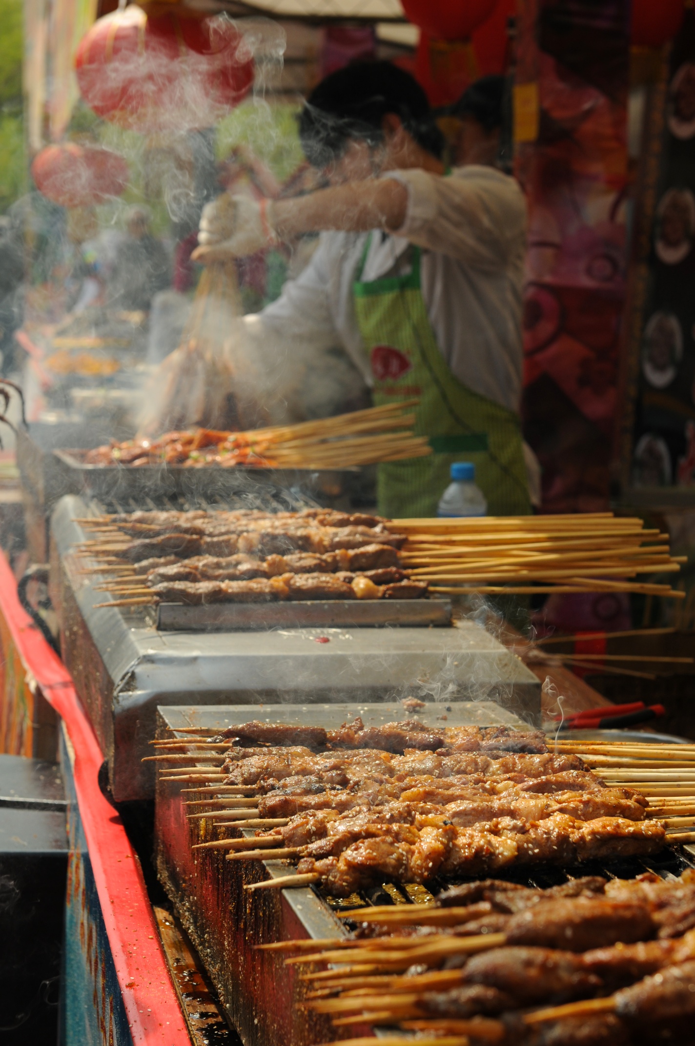 Da lobe ich mir doch lieber einen Ausflug in einen der vielen Parks in der Stadt. Gleich zwei Touren standen auf dem Programm der letzten Woche, zum einen die Fototour der Fotogruppe in den Yuyuantan Park und zum anderen ein Familienausflug in den Jingshan Park mit Blick auf die Verbotene Stadt. Beide sind auch unter der Woche gut besucht, die Chinesen lieben es in die Parks zu gehen, um zu entspannen, Sport zu treiben, ihre Fähigkeiten im Musizieren, Tanzen oder Singen zum Besten zu geben oder einfach nur um draußen zu essen. Im ersten Park stand daher auch eine ganze Batterie von Imbissbuden bereit, die mit allem was das Herz begehrt lockten. Popcorn, Eis, Fritiertes, Gegrilltes, Gerolltes, Früchtespieße oder farbenfrohe Getränke. Der Duft an den Grillständen ist sehr verführerisch und bei Gelegenheit werde ich zu einem der Fleischspieße greifen.