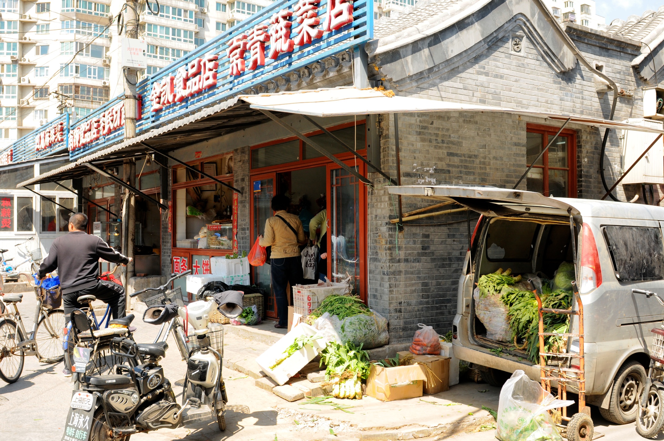Neben den Wohngebäuden finden sich auch viele kleine Geschäfte in den Hutongs. Marktleben gepaart mit familiären Restaurants, Läden für Waren des täglichen Bedarfs (schönes DDR Deutsch) oder Reparaturwerkstätten. Gerade in den Gebäuden, die zu einer belebten Straße hin liegen wurden die Außenmauern geöffnet, um sich mit einem Shop den Lebensunterhalt zu verdienen.