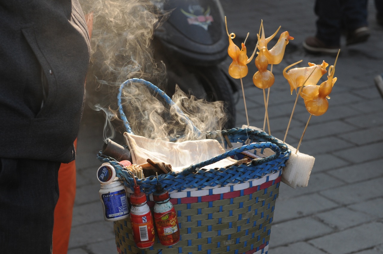 Mit einer Freundin erkundete ich bei noch blauem Himmel letzte Woche den relativ großen TianYi Mark im Westen der Stadt. Dort gibt es fast alles, was man braucht oder auch nicht. Von Schreibwaren über Spielsachen, Dekoration, Elektronik und Schmuck. Eine ganze Etage bietet die größte Handtaschenauswahl, die ich bisher im Leben gesehen habe. Wer hier nicht findet, was er sucht, der kann es dann in einem der Nebengebäude versuchen, das Gelände wirkt ein bisschen wie Disneyland mit der kitschigen Dekoration. Nach gut einer Stunde brummt einem der Kopf, entweder vor lauter Angebotsauswahl an Dingen, die man nicht wirklich braucht oder vom „Duftcocktail“ gemixt aus Farbe, Plastik, Kunstleder und süßer Wurst vom Imbiß.